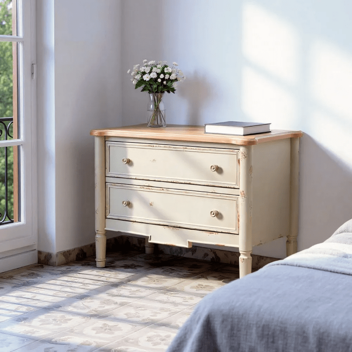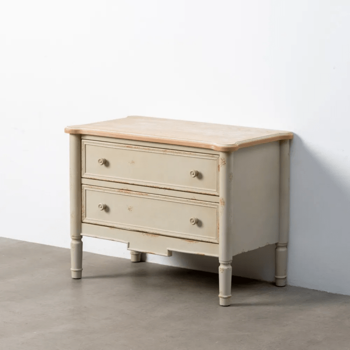 Su acabado en tonos naturales y crema resalta el carácter rústico y acogedor de la pieza, ideal para estancias de estilo clásico, shabby chic o provenzal.