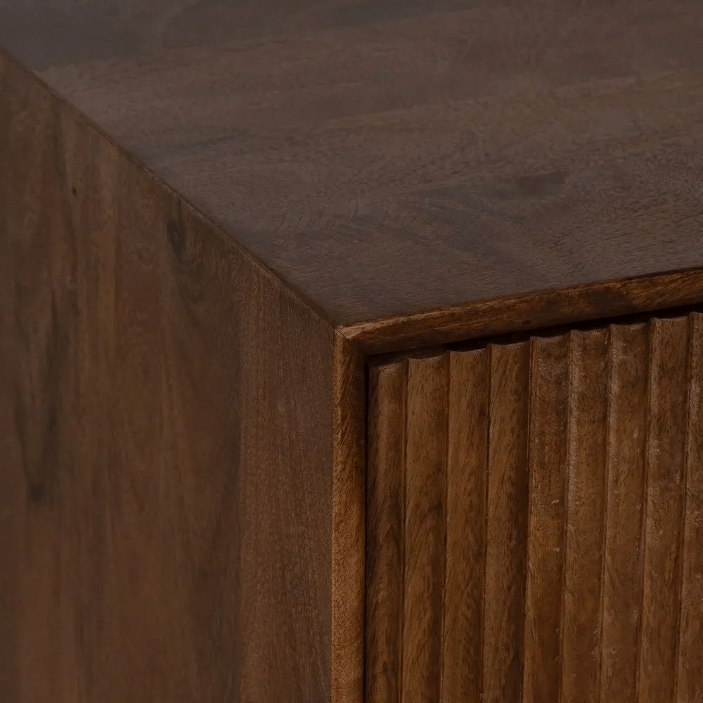 El mueble auxiliar Talaia destaca por su diseño contemporáneo y su elegante acabado en color marrón oscuro, ideal para añadir calidez y estilo a tu salón, comedor o recibidor. Fabricado en madera maciza de mango y con patas y tiradores de hierro, combina materiales naturales y resistentes que garantizan durabilidad y un encanto artesanal único.