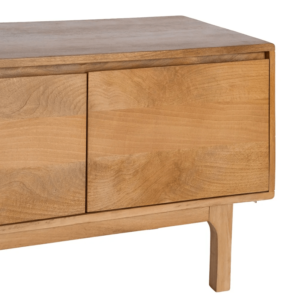 Mueble de televisión en color natural fabricado en madera de mango.