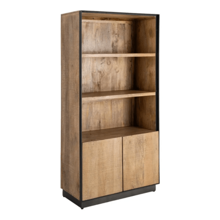 Alacena en color natural fabricada en madera de mango, combinado con hierro.