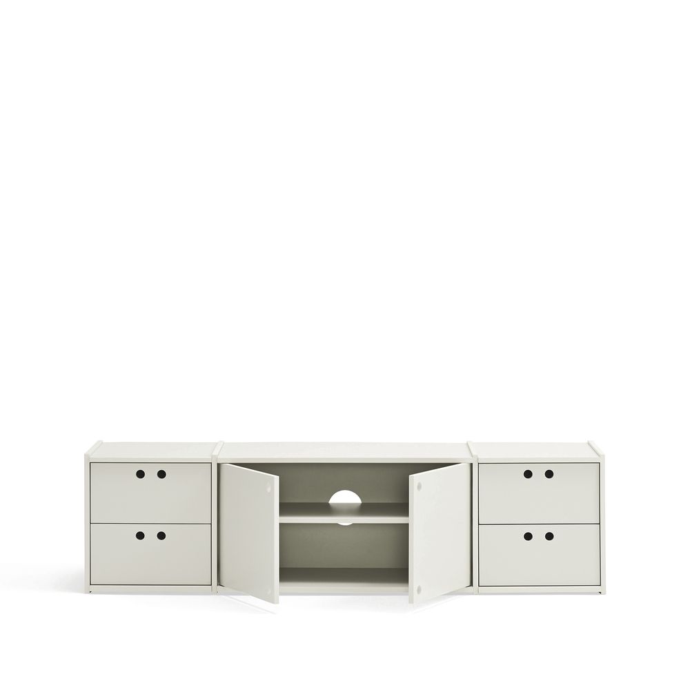 Mueble de televisión en color crema fabricado en MDF.