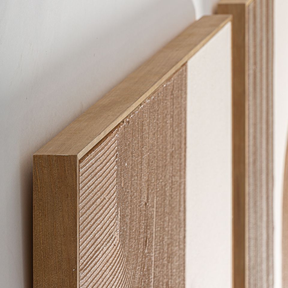 Realizados sobre lienzo en tonos naturales y acabados con un delicado trabajo manual, cada trazo en relieve suma profundidad y textura. El conjunto se complementa con marcos de madera de pino en color marrón claro, que aportan un acabado orgánico y atemporal.