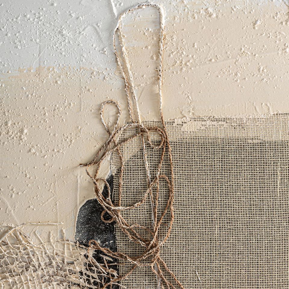 El set de dos cuadros KARIM destaca por su fuerza plástica y su cuidada combinación de texturas, tejidos y relieves. Cada pieza trabaja con una paleta de tonos neutros y marrones que aporta serenidad, mientras que los elementos matéricos —como fibras, cuerdas y tejidos superpuestos— suman profundidad y personalidad.