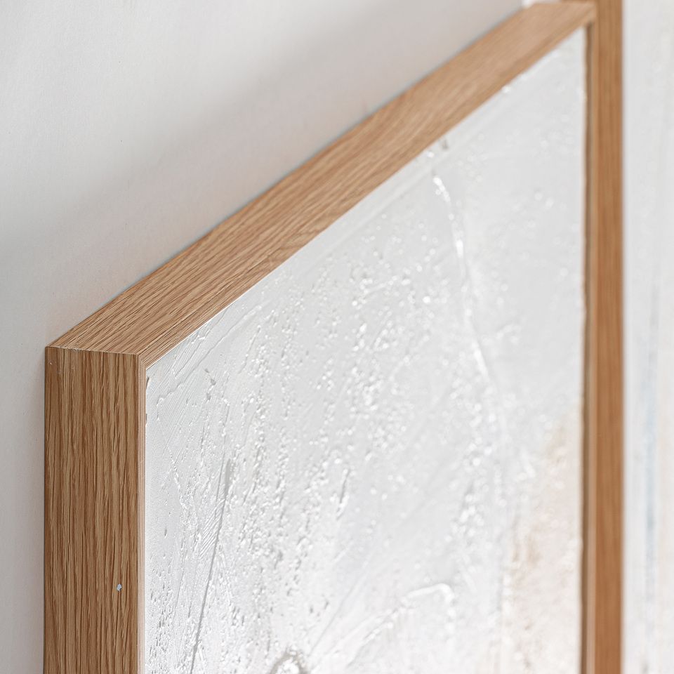 Realizados sobre lienzo con acabado artesanal y enmarcados en poliestireno color marrón, estos cuadros ofrecen un acento artístico atemporal, perfecto para interiores que buscan equilibrio visual y un toque creativo sin estridencias.