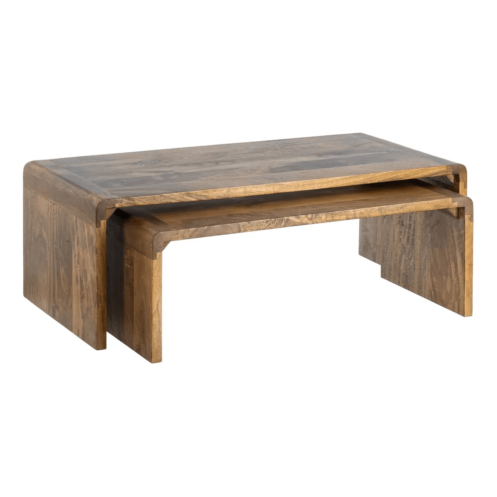 Set de mesas de centro en color miel fabricadas en madera de mango.