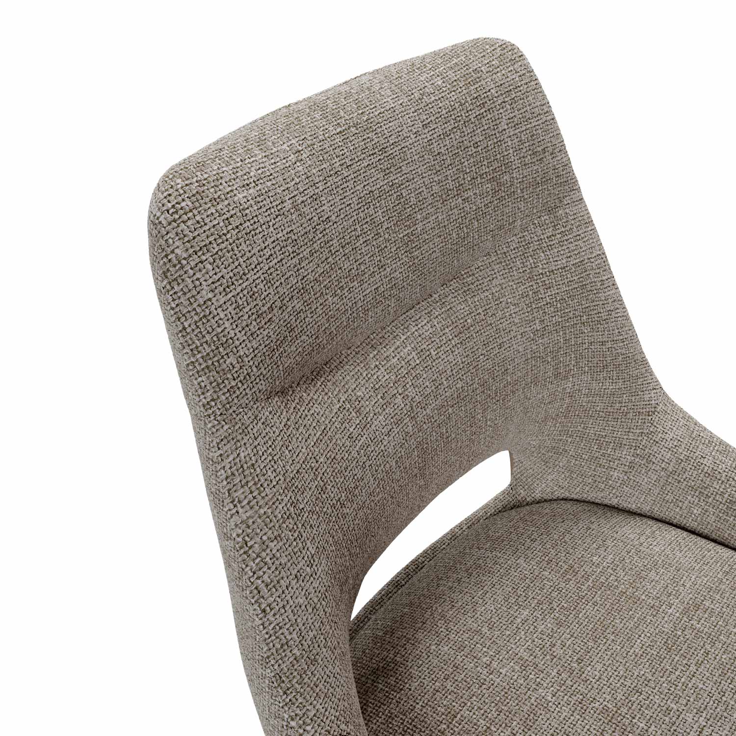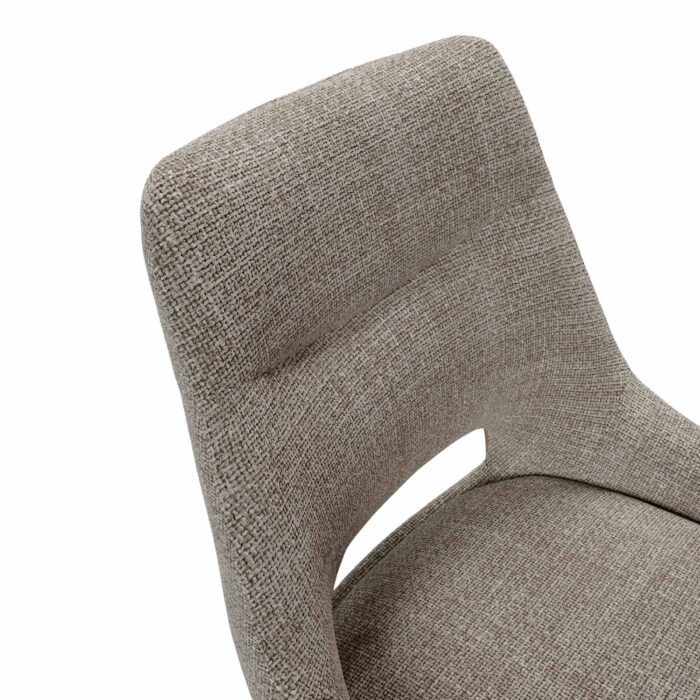La silla CALLIE destaca por su diseño original, con un respaldo ancho y un elegante detalle de apertura que le confiere un aspecto sofisticado.
