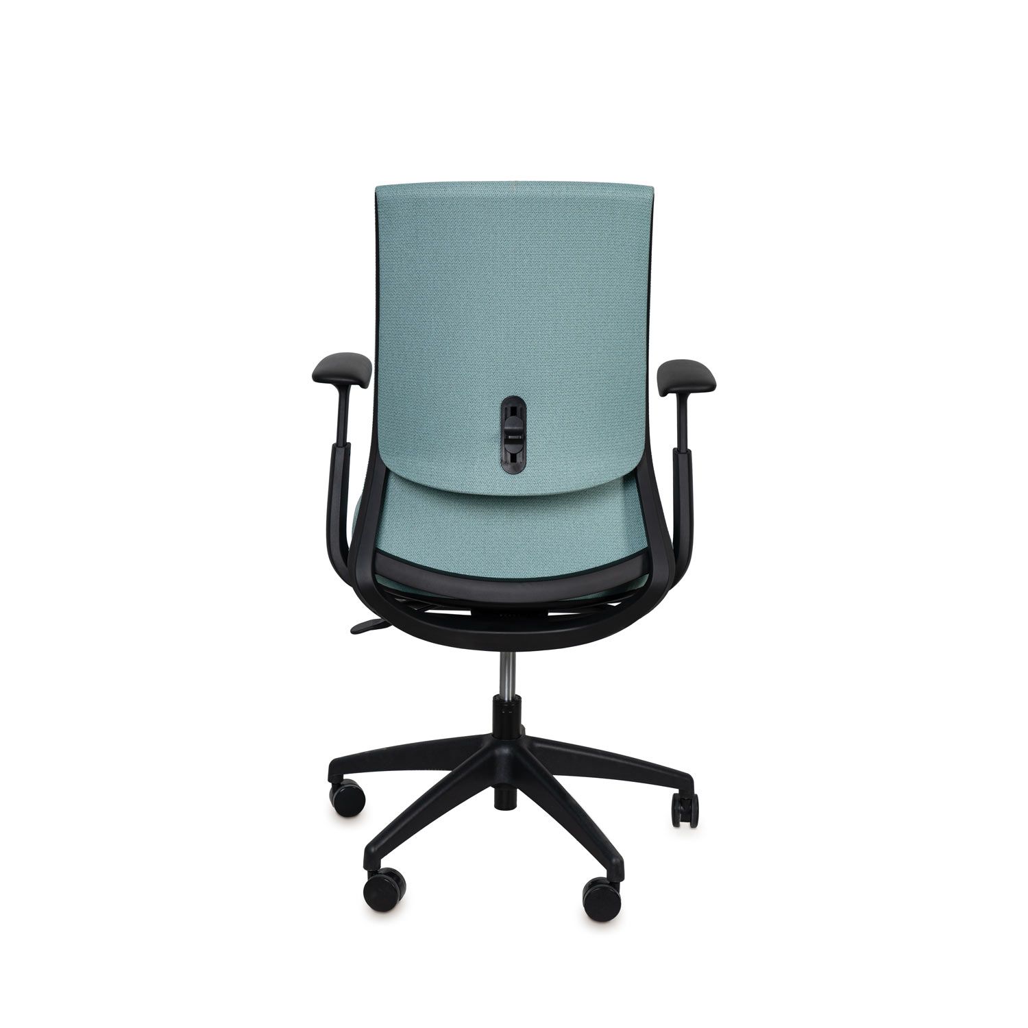 Silla de oficina en color gris, negro y menta tapizada en tejido Daily.