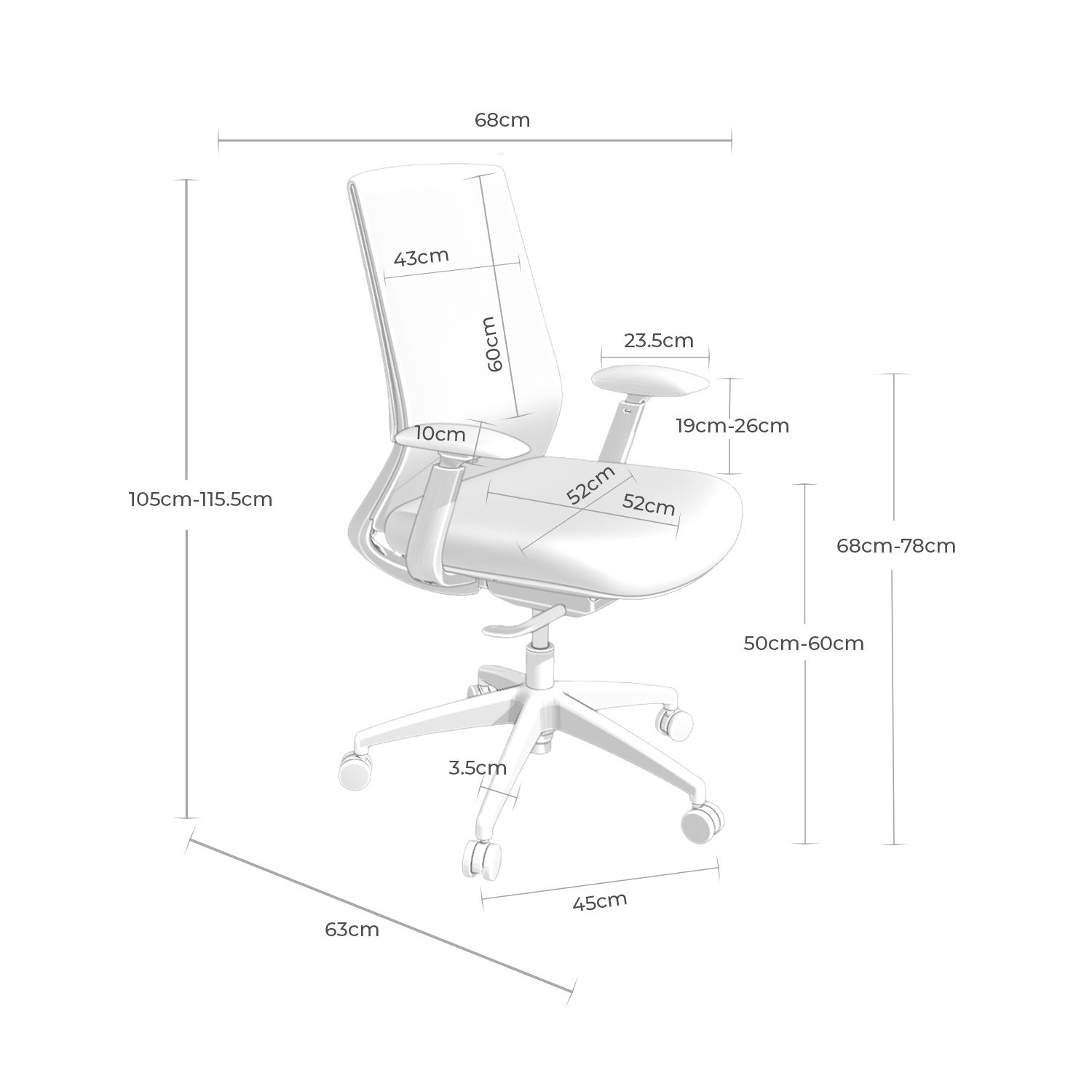 Con un diseño contemporáneo y ergonómico, esta silla se convierte en un elemento imprescindible para quienes pasan largas horas trabajando. Está tapizada en un tejido agradable al tacto que combina comodidad con facilidad de mantenimiento, ofreciendo una experiencia funcional y confortable a lo largo del día.