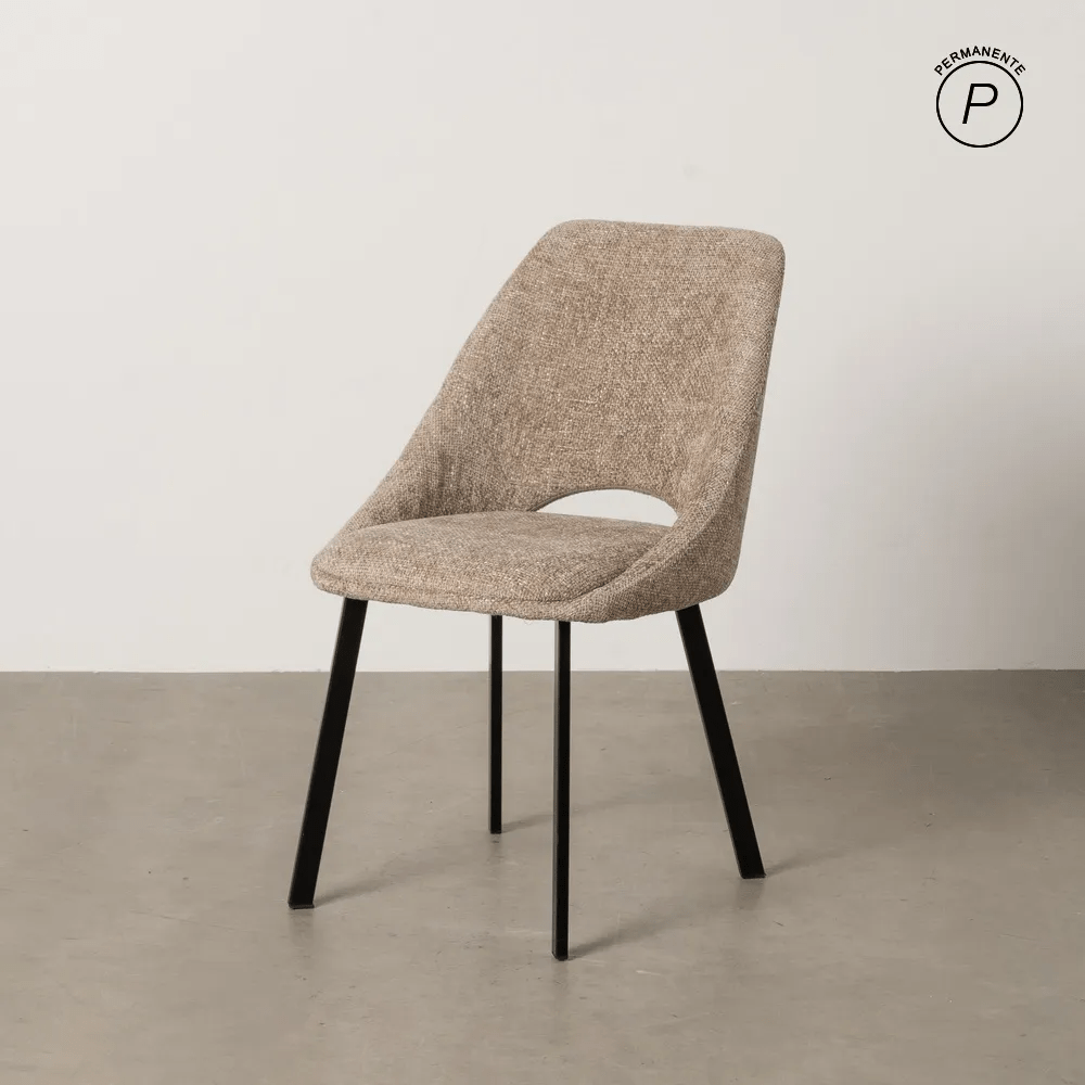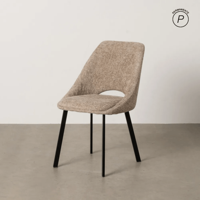 Esta silla tapizada combina confort y estilo contemporáneo para realzar cualquier comedor o espacio de trabajo. Su diseño envolvente y respaldo ergonómico ofrecen una excelente sujeción, mientras que la ligera abertura inferior aporta un toque moderno y visualmente ligero.