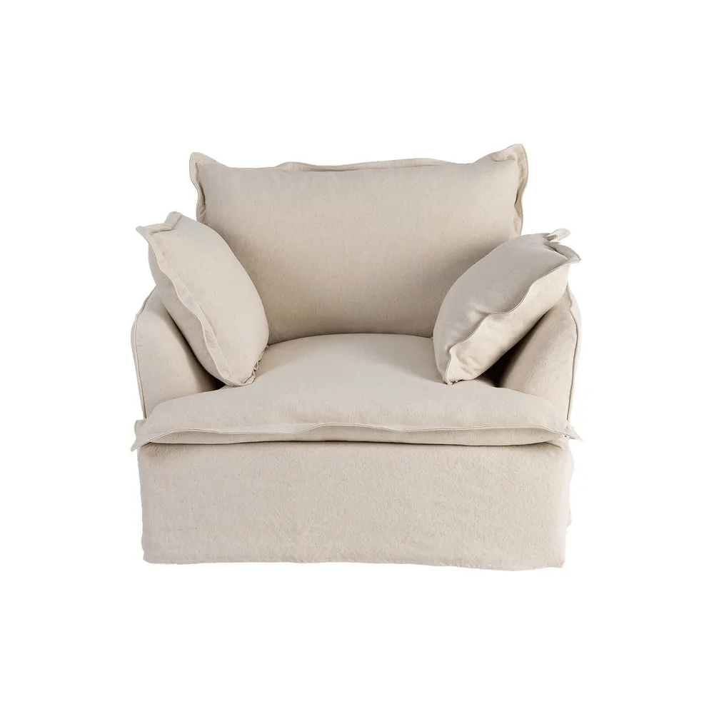 Aporta calidez, elegancia y comodidad a tu hogar con este sillón en color beige, diseñado para integrarse perfectamente en cualquier espacio moderno o clásico. Su tapizado en mezcla de lino y algodón ofrece una textura suave, resistente y transpirable, ideal para el uso diario.
