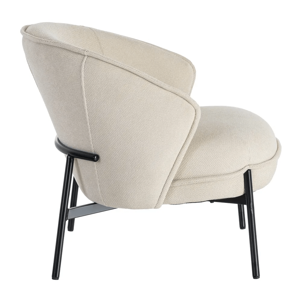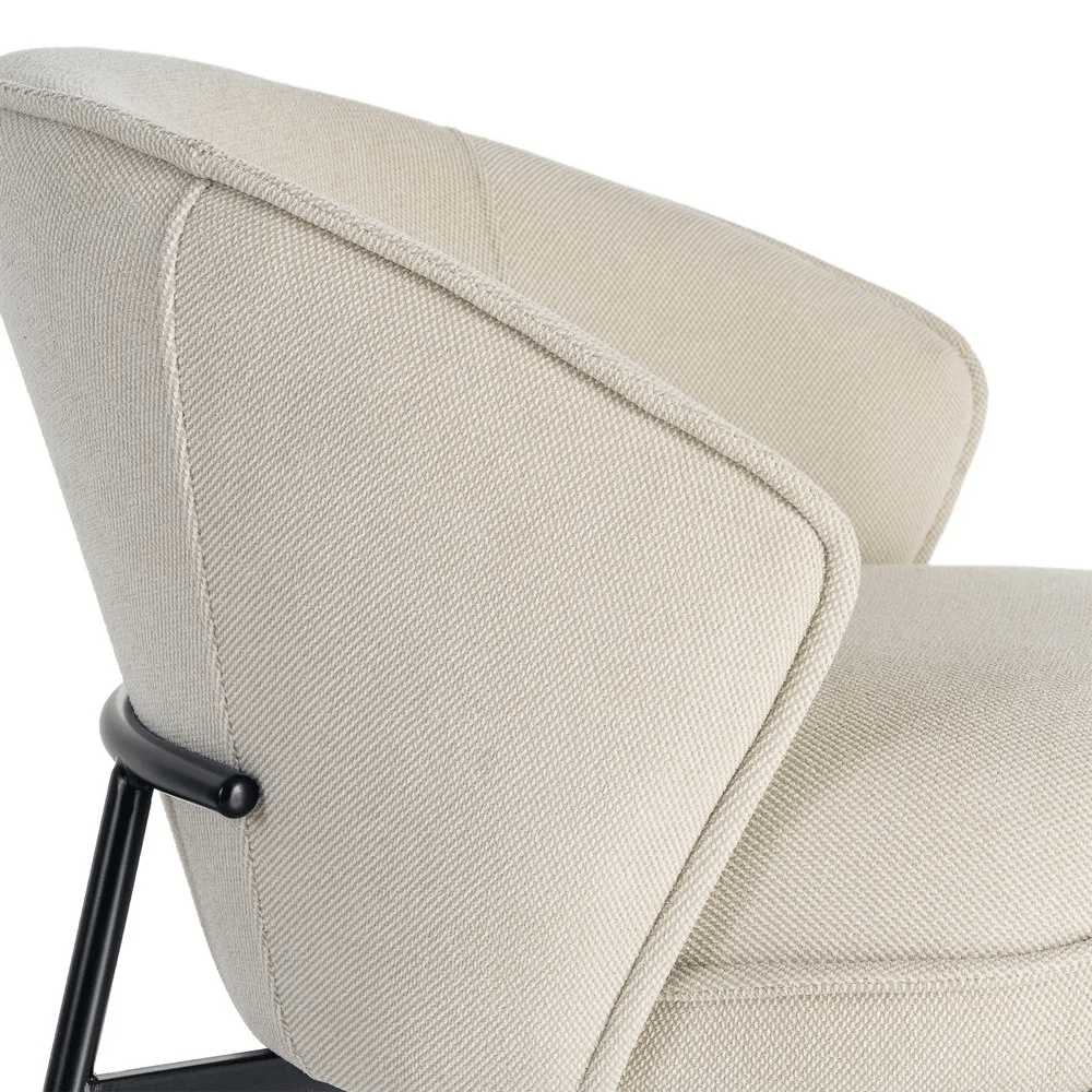 Sillón en color beige frabicado en tela poliéster, combinado combinado con metal.