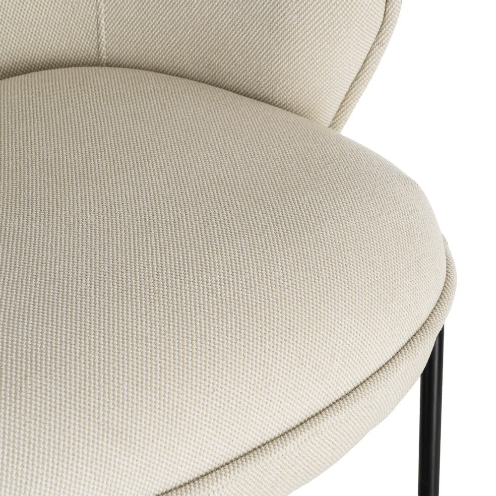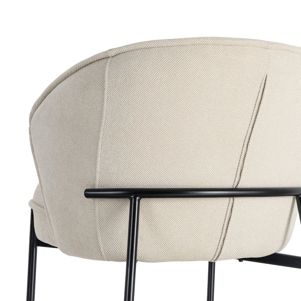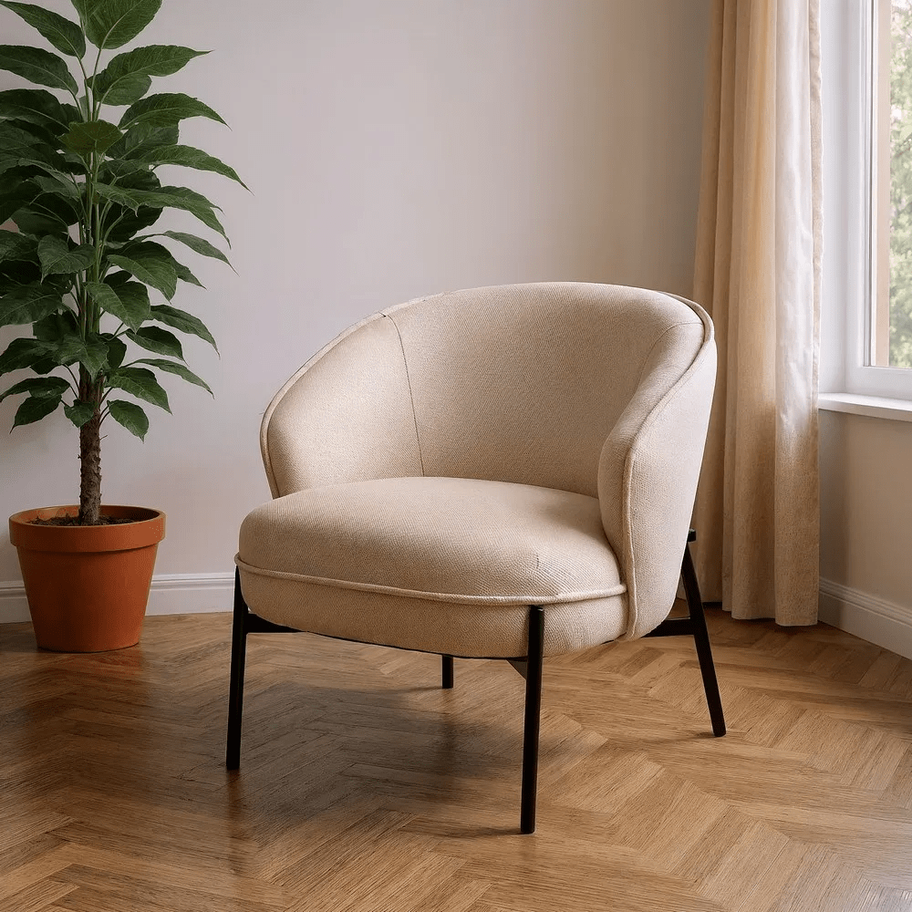 Aporta estilo y comodidad a tu hogar con nuestro elegante sillón en color beige, perfecto para salones, dormitorios o rincones de lectura. Su estructura combina una tapicería de poliéster suave y resistente con patas de metal negro, ofreciendo un diseño moderno y duradero.