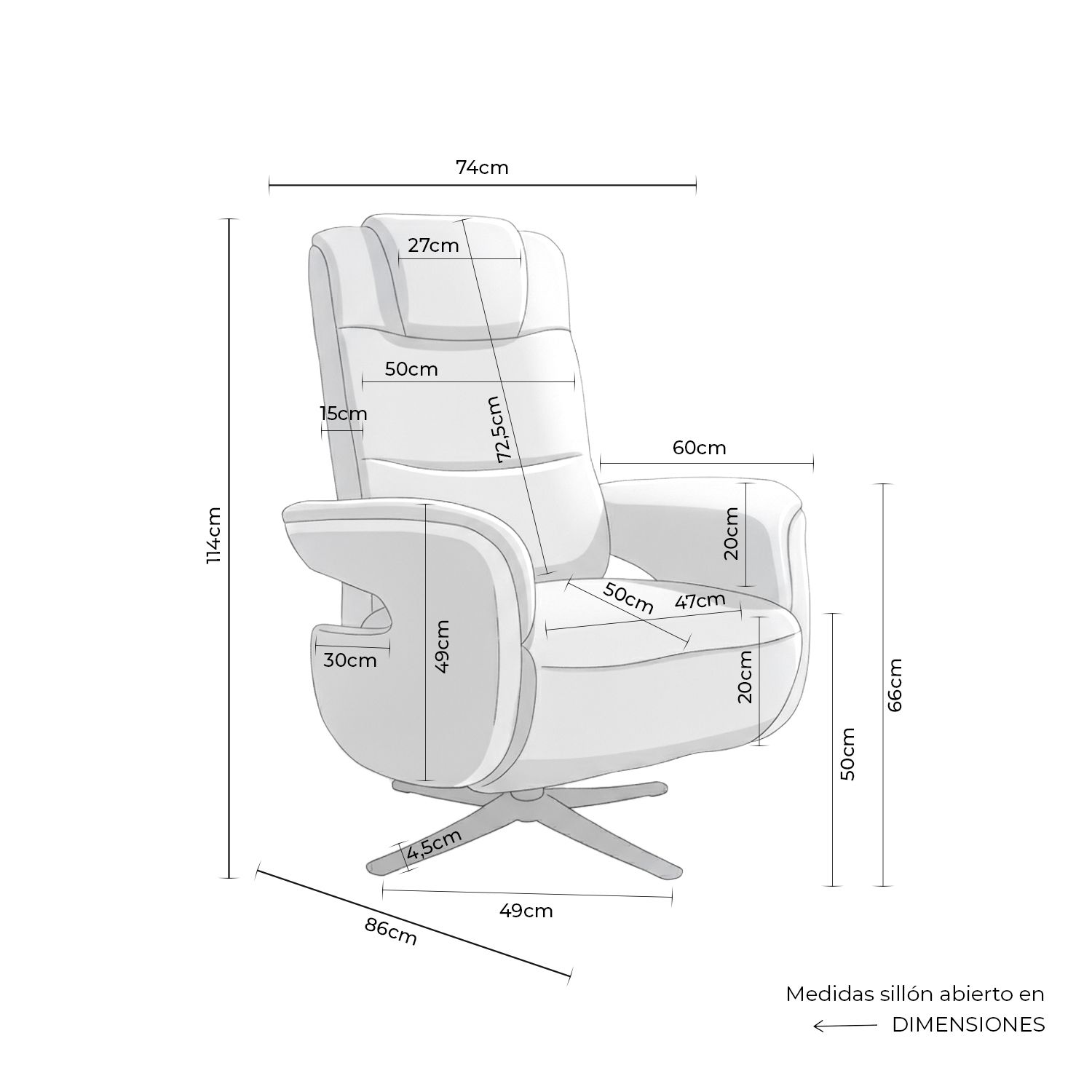 – Sillón relax con 2 motores eléctricos: Permite ajustar de forma independiente el respaldo y el reposapiés, adaptándose a distintas posturas con precisión y suavidad.