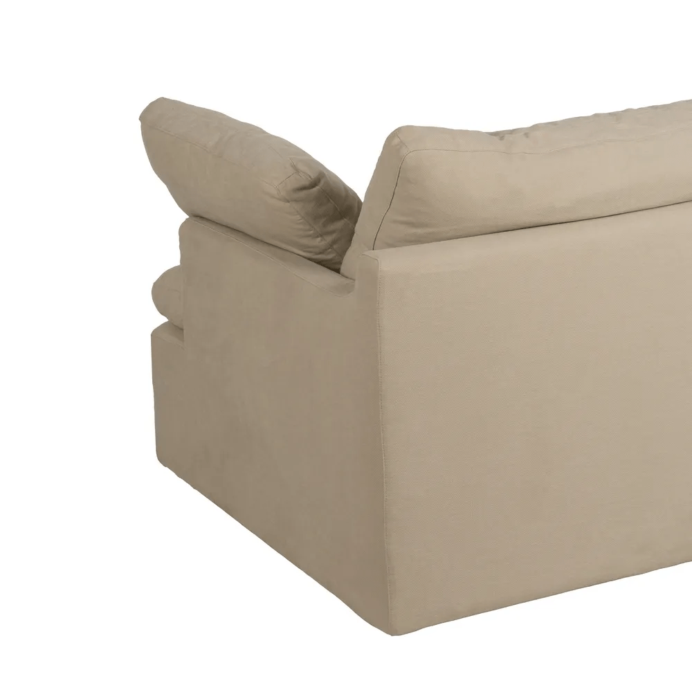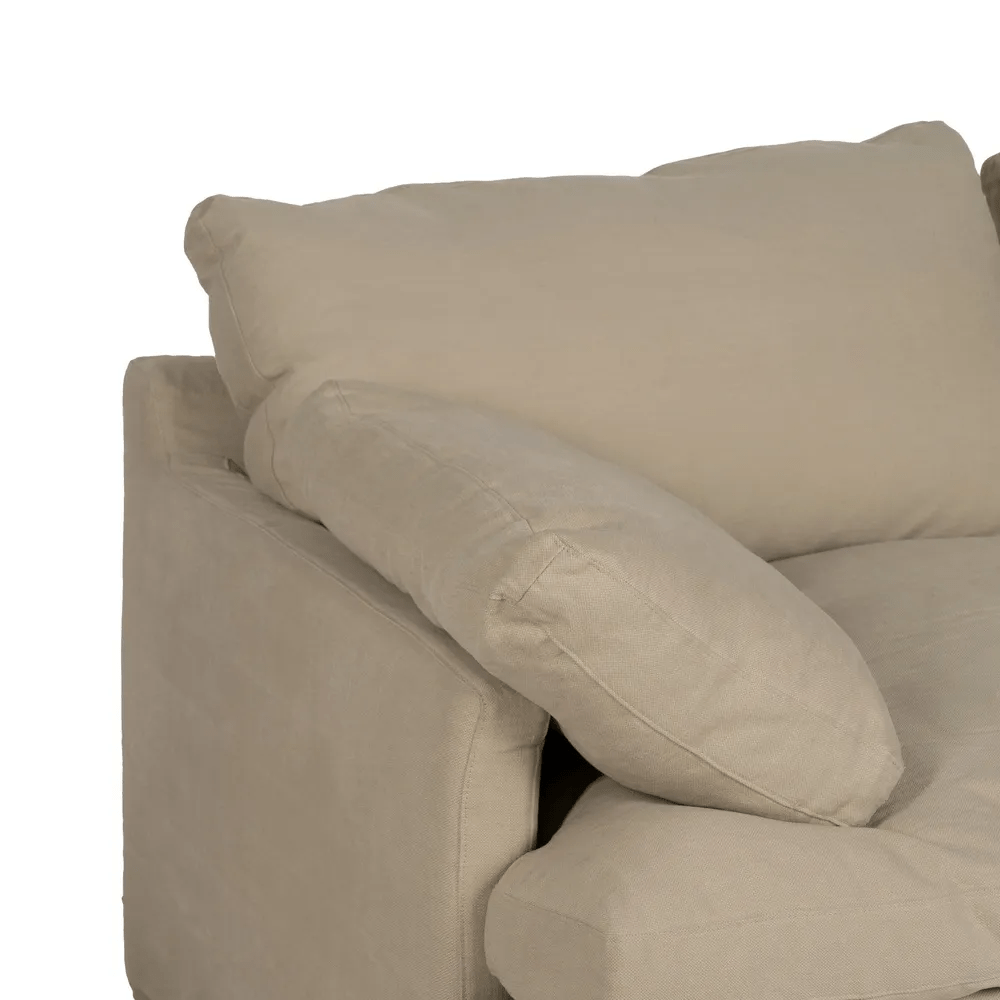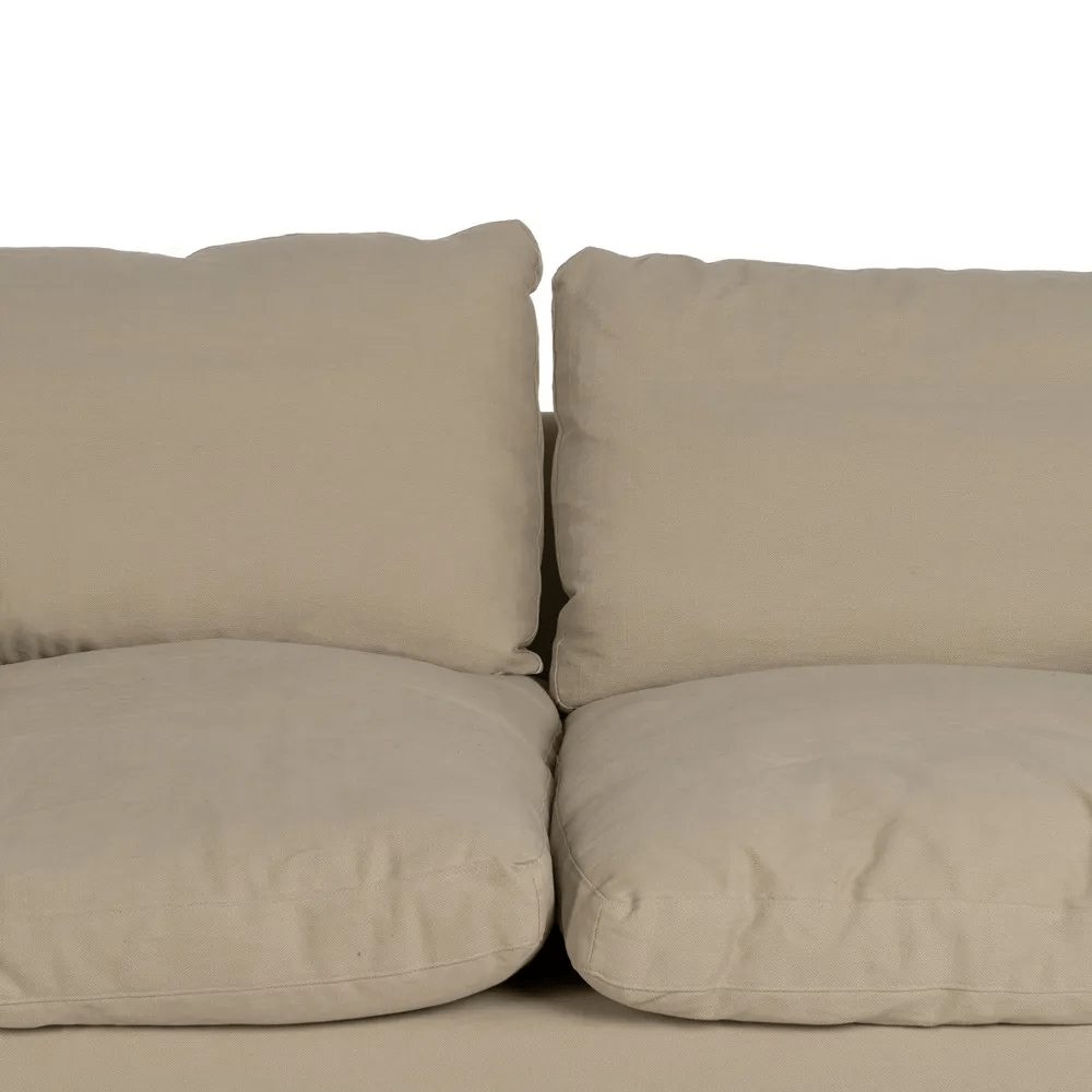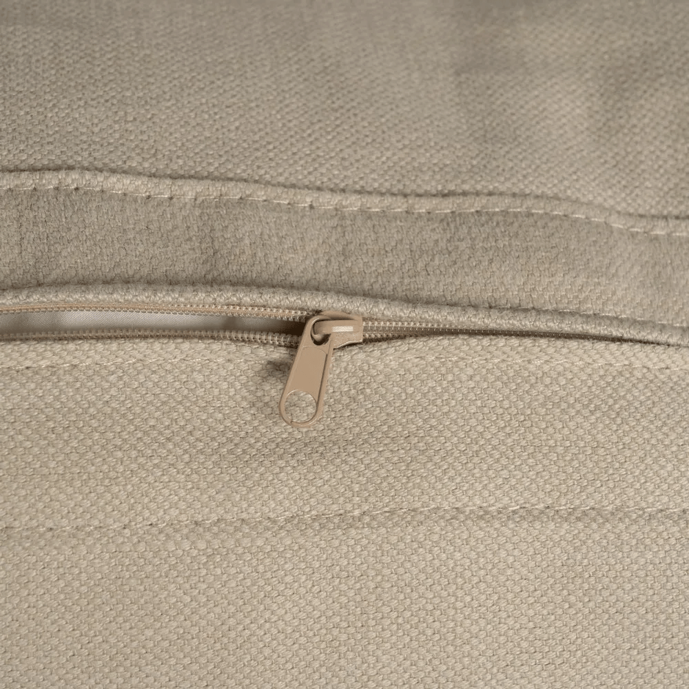 Construido sobre una sólida estructura de madera de pino, garantiza estabilidad y durabilidad. Tanto el asiento como el respaldo cuentan con un relleno de foam y pluma, proporcionando un confort envolvente y una sensación mullida ideal para el descanso diario. Los cojines incluyen cierre con cremallera, permitiendo retirar y colocar las fundas con facilidad.
