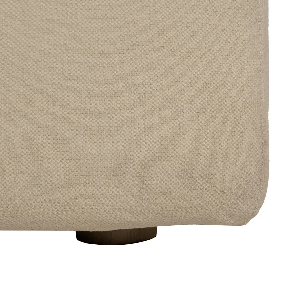 Puf en color gris, mostaza o beige fabricado en tela Velar, combinado con madera de pino.