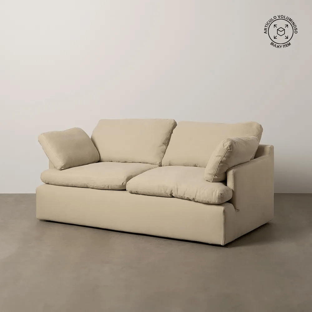 Disfruta de la mezcla perfecta entre comodidad y diseño con nuestro sofá de 2 plazas en color beige, una pieza versátil y elegante que encaja en cualquier ambiente. Su tejido de 35% lino y 65% algodón ofrece una textura suave, resistente y agradable al tacto, aportando un estilo natural y atemporal a tu hogar. Además, es totalmente desenfundable, lo que facilita su limpieza y mantenimiento.
