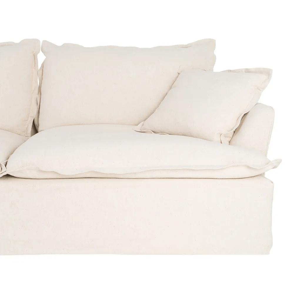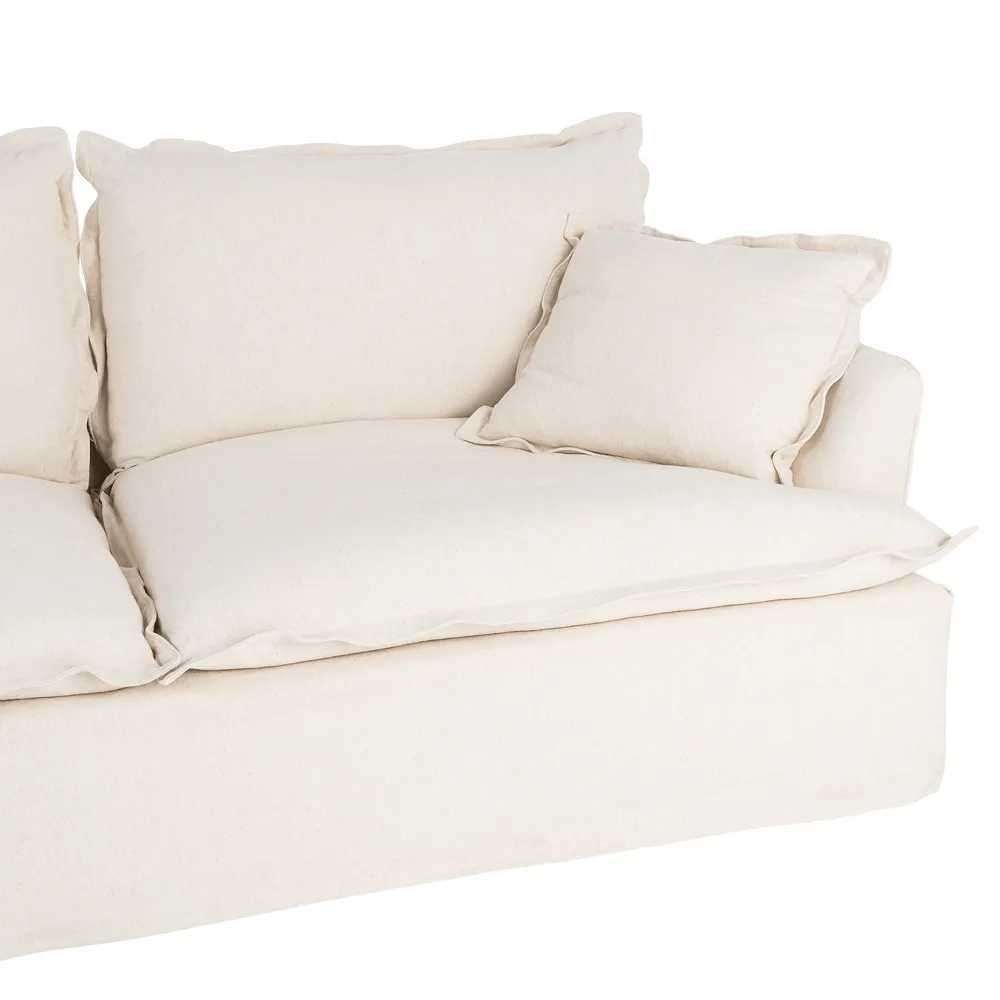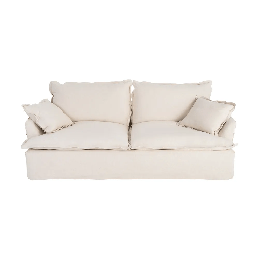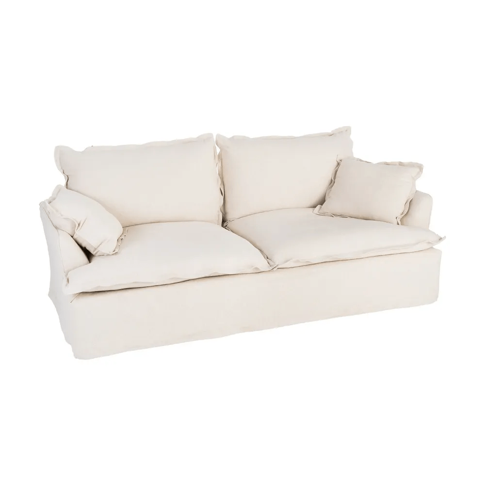 Este sofá de 3 plazas en color beige es la pieza perfecta para crear un espacio acogedor, elegante y funcional en tu hogar. Su tapizado en mezcla de lino y algodón aporta suavidad, transpirabilidad y un acabado natural que encaja con cualquier estilo decorativo.