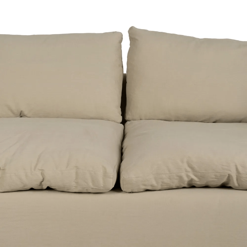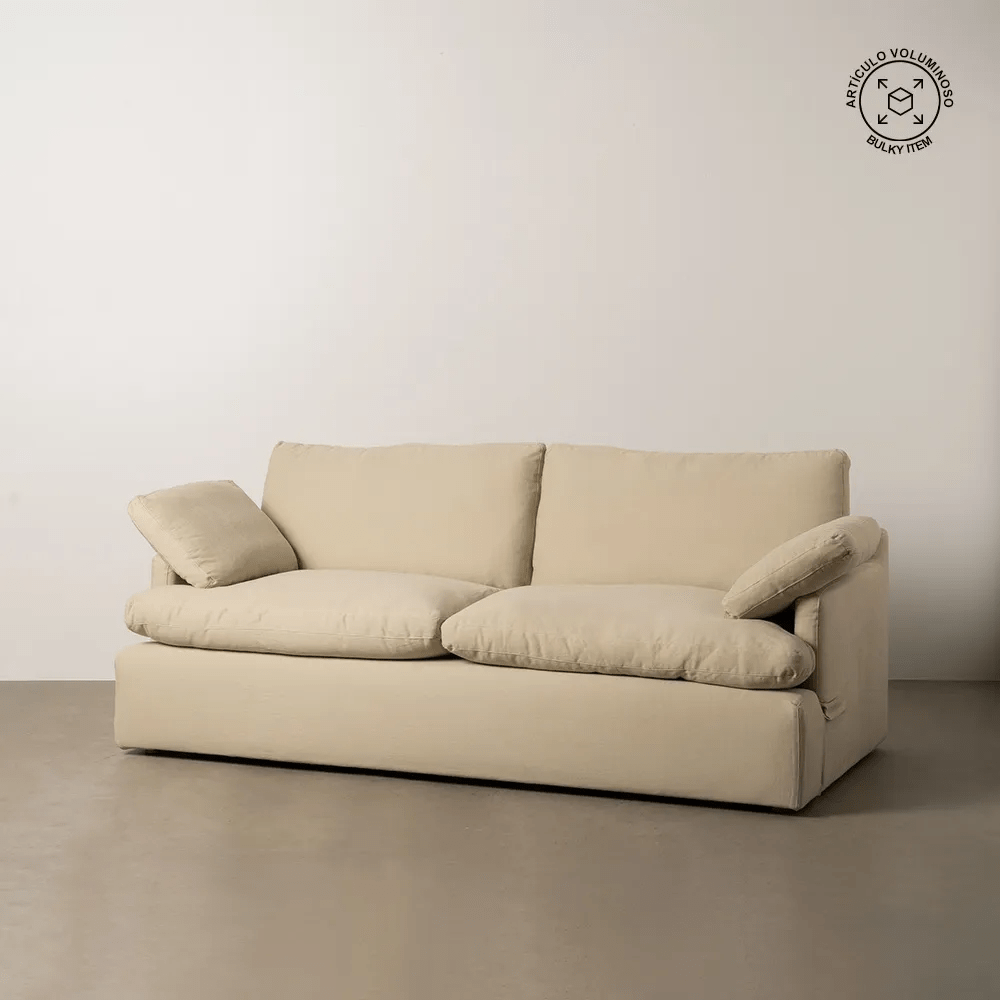 Aporta calidez, estilo y una comodidad incomparable a tu salón con nuestro sofá de 3 plazas en color beige. Diseñado para quienes buscan un mueble amplio, acogedor y de estética minimalista, este sofá combina suavidad, resistencia y funcionalidad en cada detalle. Su tejido de 35% lino y 65% algodón ofrece una textura natural, fresca y agradable al tacto, y además es desenfundable, facilitando su limpieza y mantenimiento.