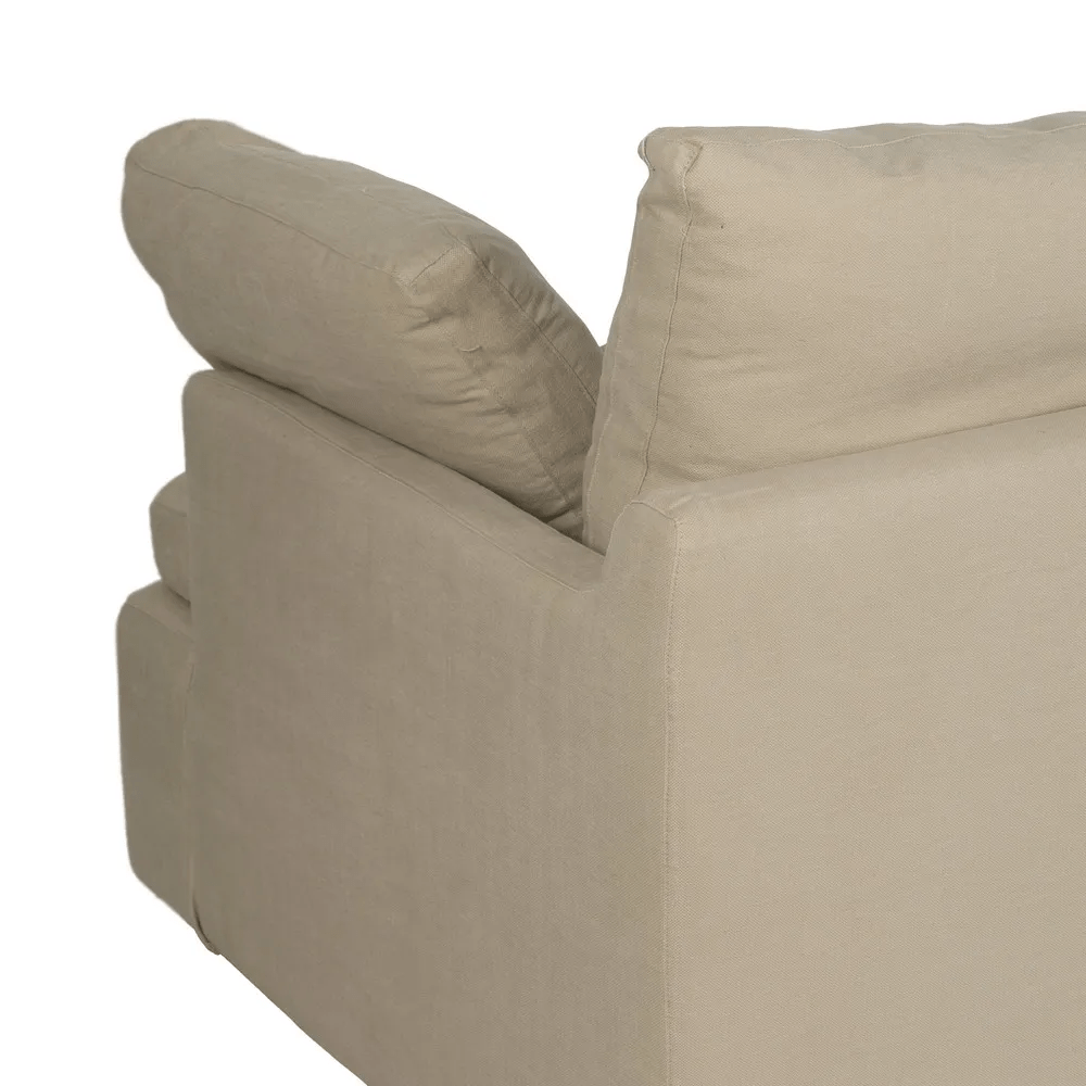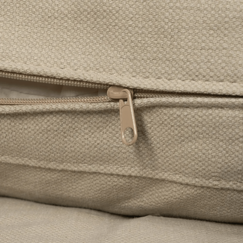La estructura de madera de pino garantiza solidez y estabilidad, mientras que el relleno de foam y pluma tanto en el asiento como en el respaldo proporciona una sentada mullida, envolvente y muy confortable. Los cojines cuentan con cierre de cremallera, lo que permite retirar las fundas con total facilidad.