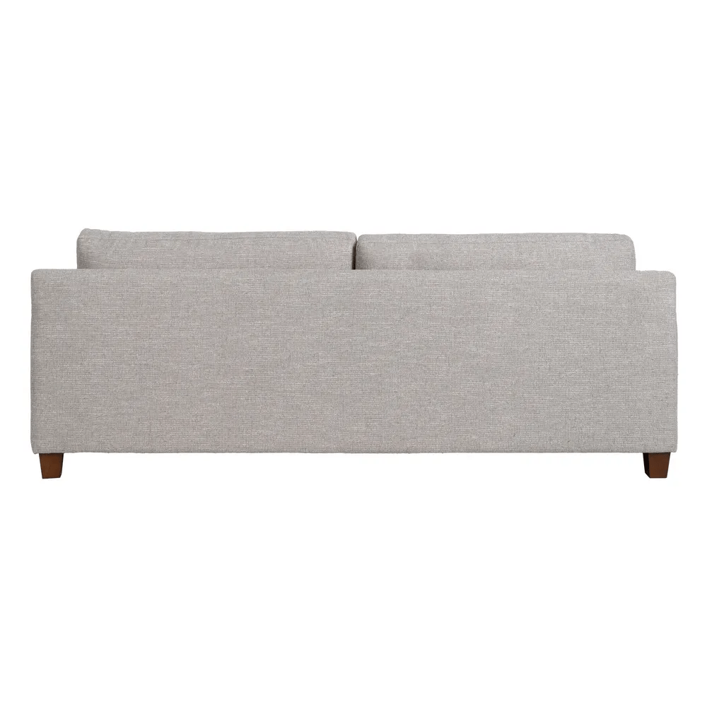 Está tapizado en tejido 100% poliéster de alta calidad, con un gramaje de 390 g/m², que ofrece una textura agradable al tacto, durabilidad y fácil mantenimiento. Los cojines del respaldo, laterales y asiento son desenfundables mediante cremallera, lo que permite una limpieza práctica y cómoda.