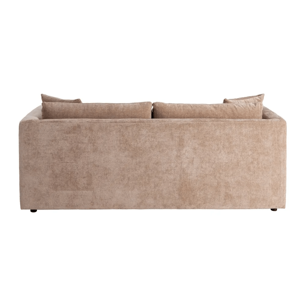 Tapizado en 100% poliéster, con textura suave y agradable al tacto, garantiza resistencia y mantenimiento sencillo para el día a día. La estructura está fabricada en madera conglomerada y se complementa con patas de madera de caucho, aportando estabilidad y durabilidad. Además, los cojines laterales y traseros son desenfundables, lo que facilita la limpieza y prolonga la vida del sofá.