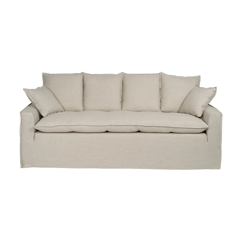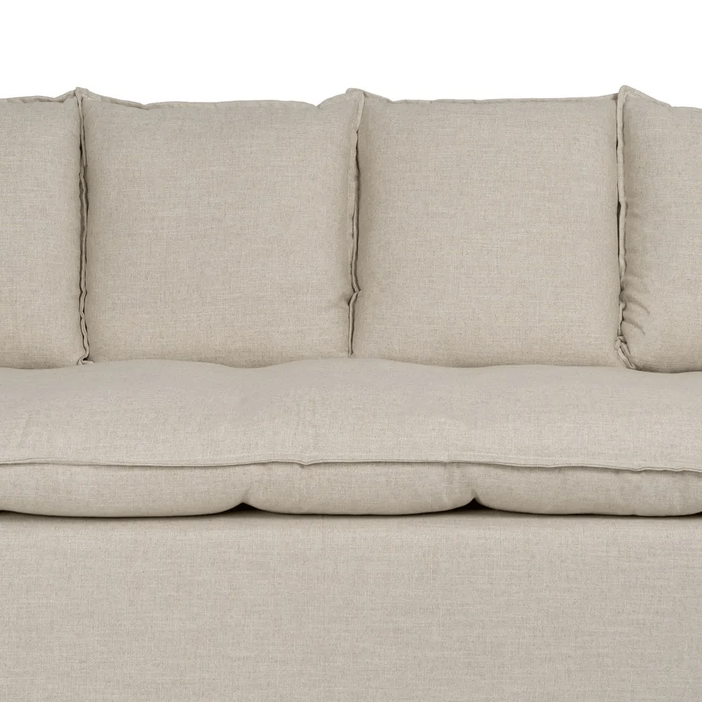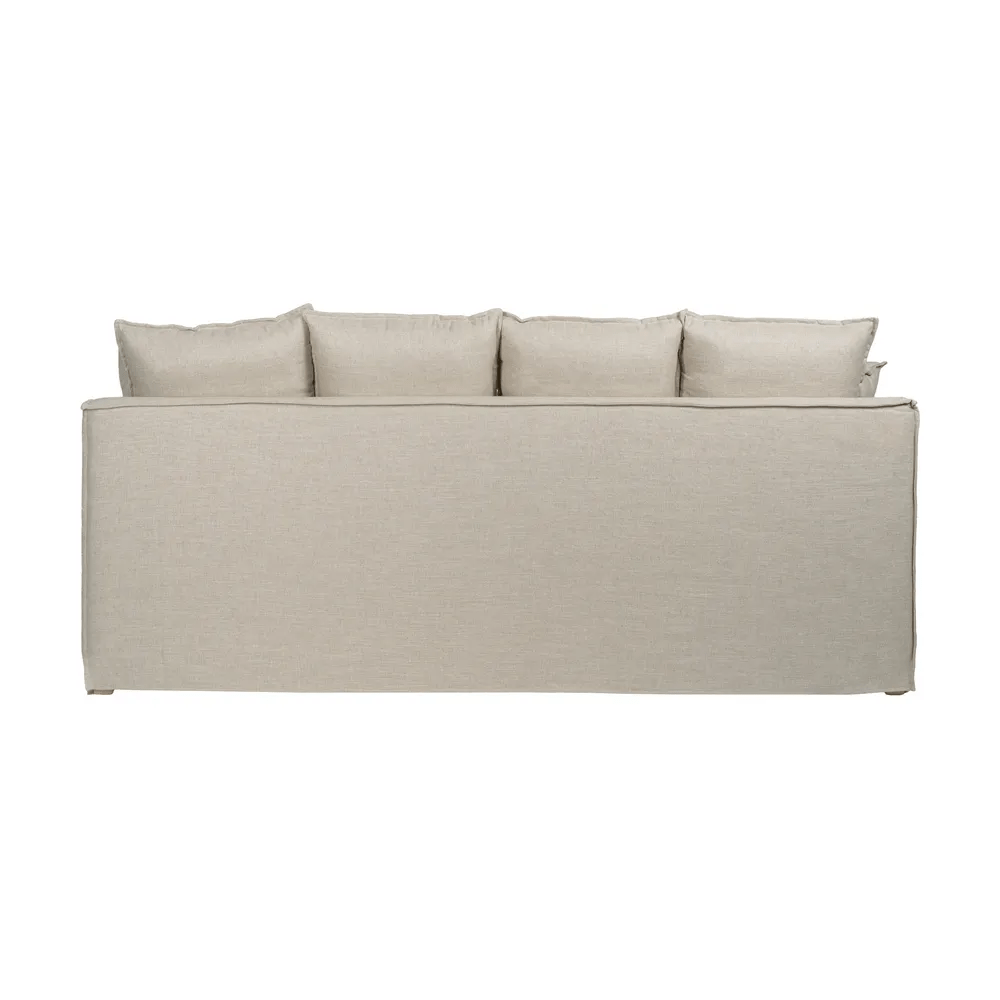 Este sofá de 4 plazas en color natural destaca por su diseño elegante y atemporal, perfecto para crear ambientes luminosos, acogedores y sofisticados. Sus líneas rectas y proporciones equilibradas lo convierten en una pieza versátil que se adapta fácilmente a distintos estilos decorativos.