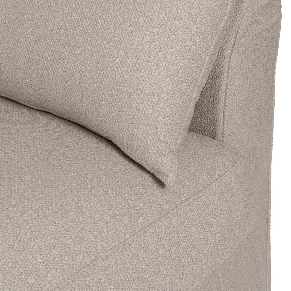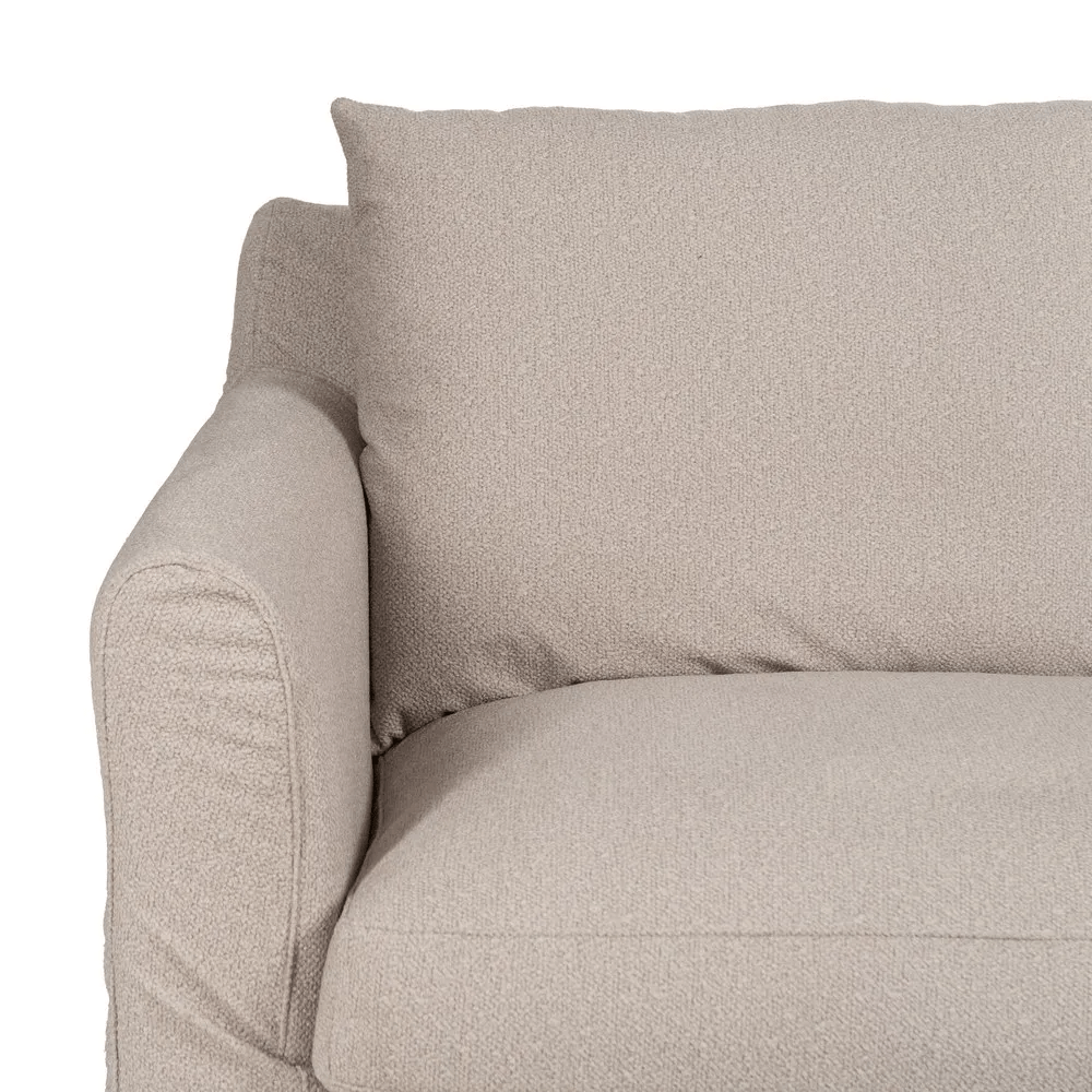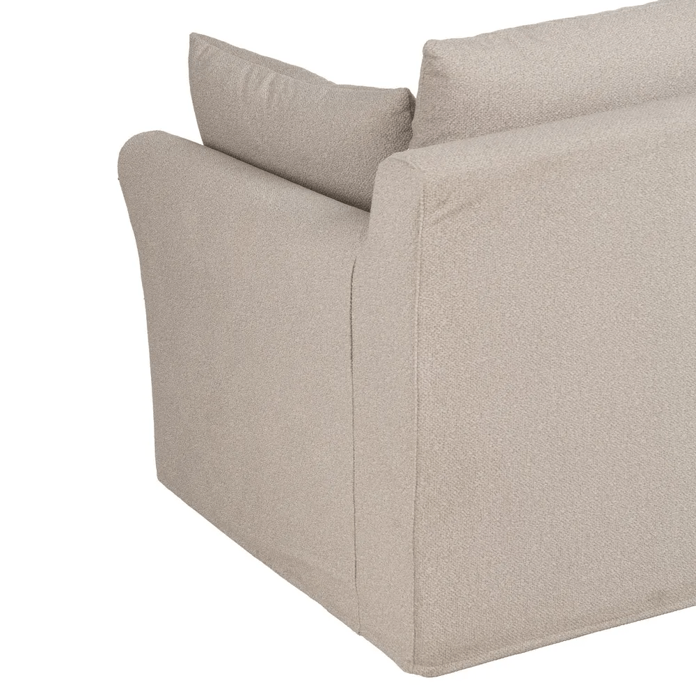 Tanto los cojines como la estructura son desenfundables, facilitando el mantenimiento y la limpieza diaria. Sus proporciones generosas y su estética suave lo hacen perfecto para disfrutar del descanso en familia o recibir invitados con estilo.