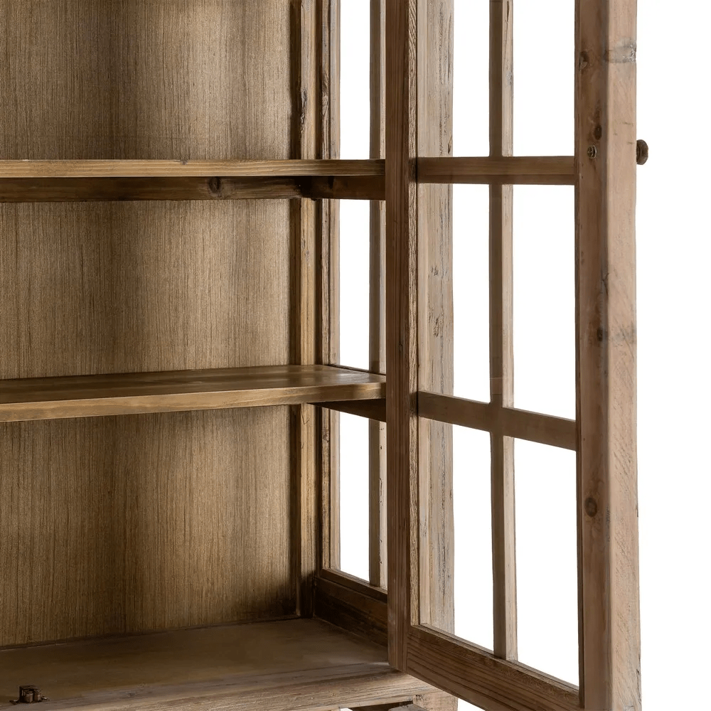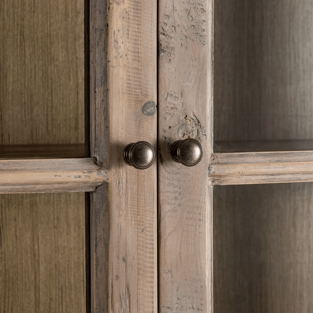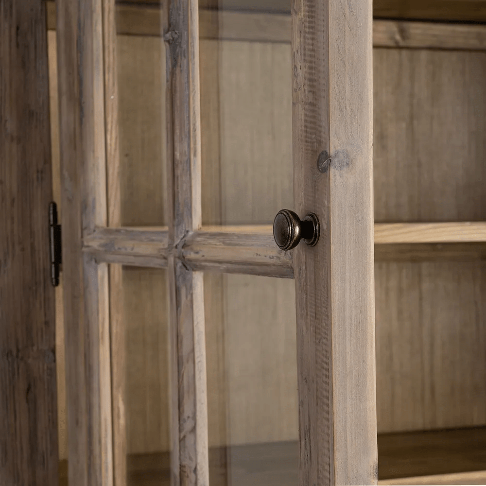 Gracias a su estilo rústico y natural con un toque contemporáneo, esta vitrina se integra fácilmente en distintos ambientes, convirtiéndose en una pieza protagonista, versátil y duradera.